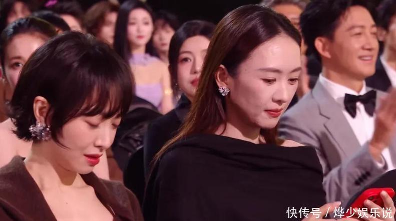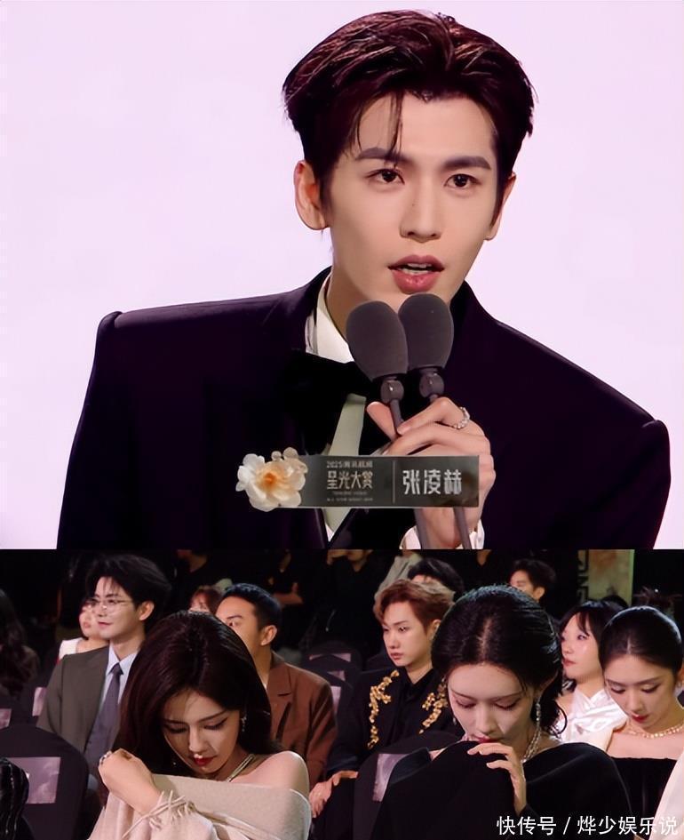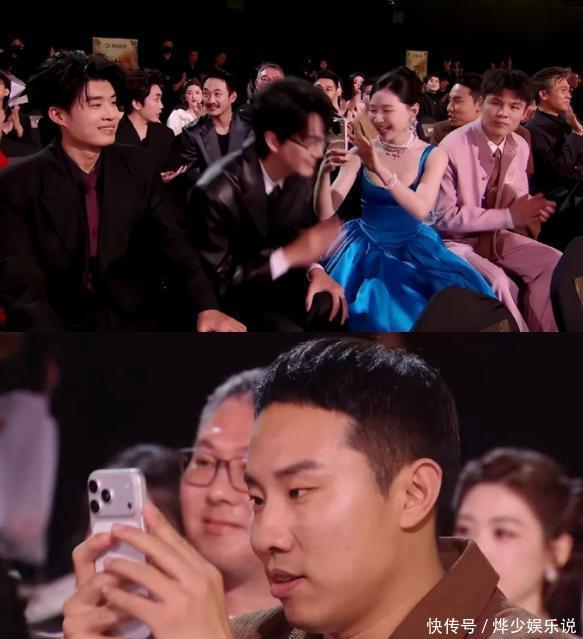 张凌赫上台时,镜头迅速对准了低头玩手机的白鹿和孟子义。