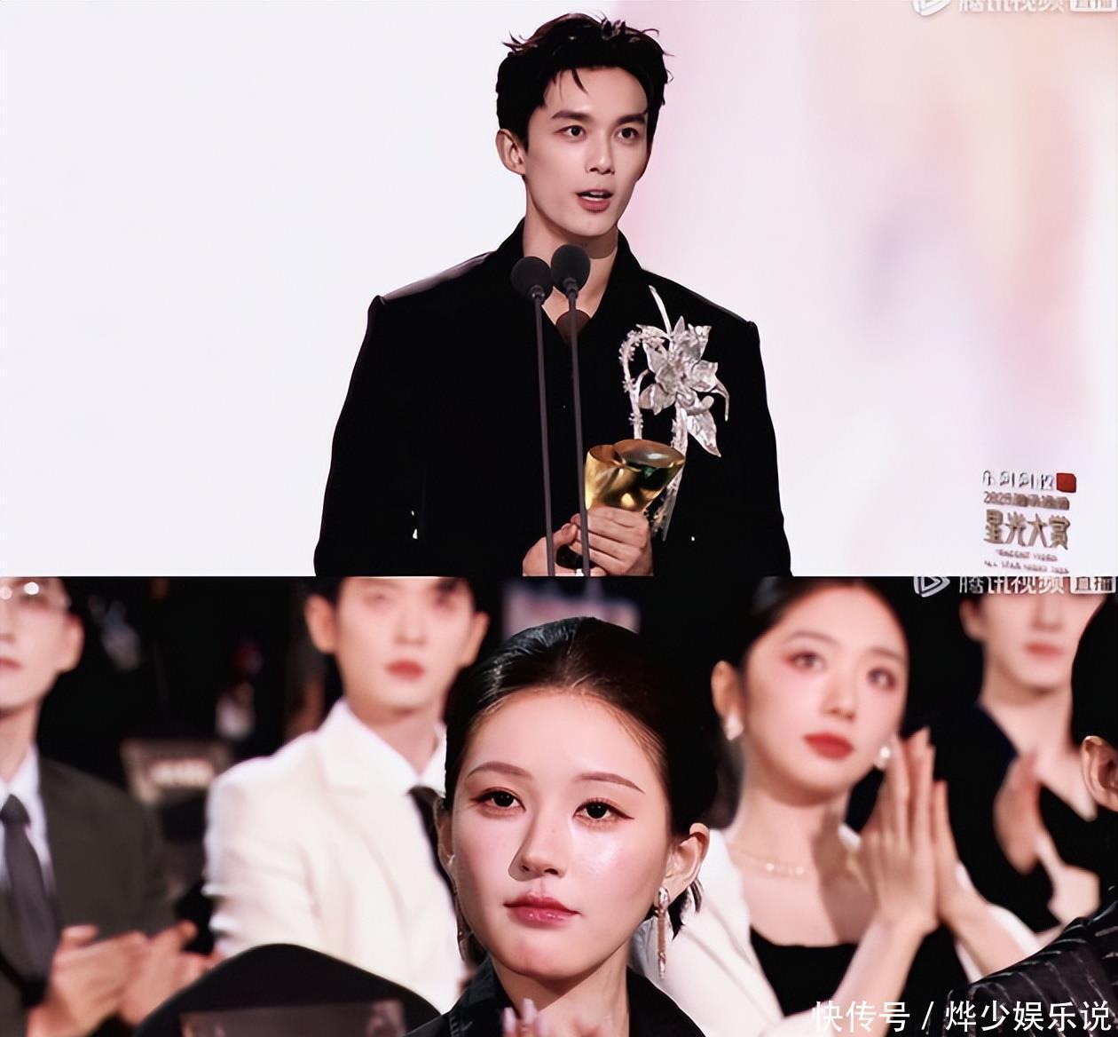 吴磊在台上接过奖杯时,镜头却突然切给了台下鼓掌的赵露思,这一秒的切换让整个互联网沸腾了。